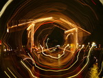 2015verlichtte brug in Amsterdam sluit zich, opgenomen met lange sluitertijd en gelijk de camera draaien